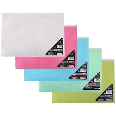 Koperta wykonana z bezbarwnego lub kolorowego polipropylenu. Zamykana na bezbarwny zamek strunowy. Wymiary: 340 x 238 mm