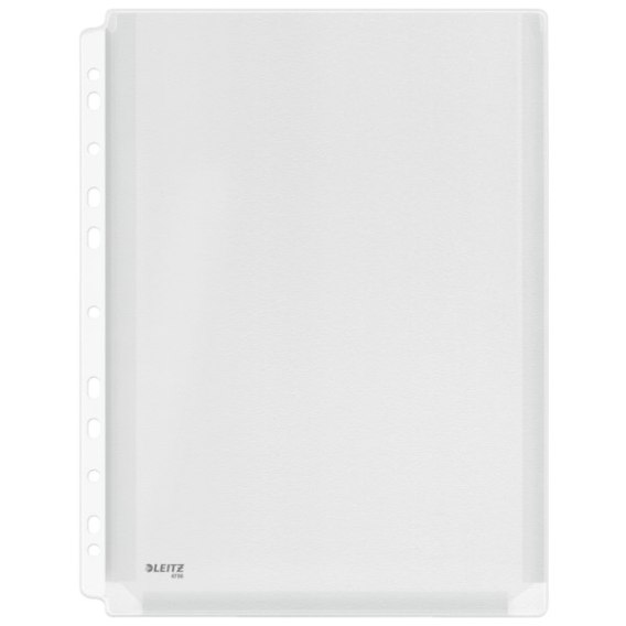 Koszulka A4 na katalogi Leitz_- boczna perforacja umożliwia wpięcie do segregatora_- otwierana z góry_- grubość folii 170 mic._- multiperforowana - pasuje do każdego segregatora_- z poszerzanymi bokami_- jednostka sprzedaży 1 opakowanie/folia 10 szt