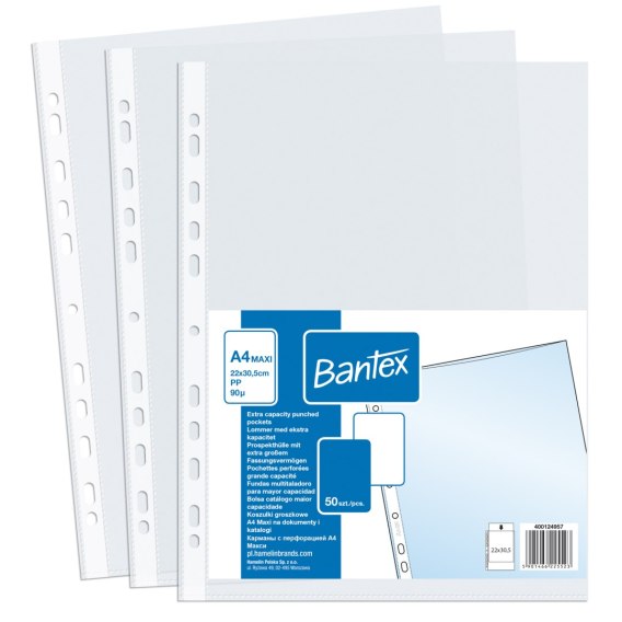 Koszulki groszkowe, poszerzane A4+ MAXI 90mic., w folii (50szt) BANTEX 400124957