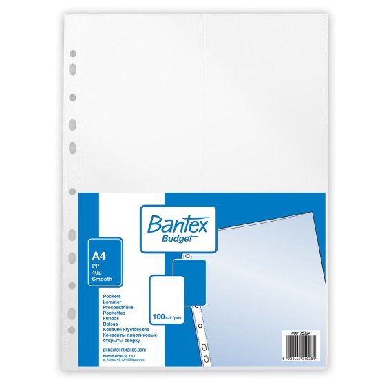 Koszulki krystaliczna A4 40mic., w folii BUDGET (100szt) BANTEX 400175724
