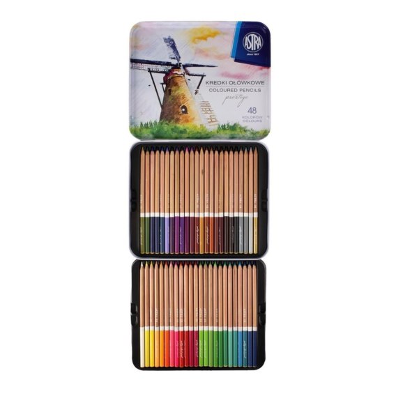 • Kredki z drewna cedrowego w metalowym pudełku Astra Prestige 48 kolorów, 312121003