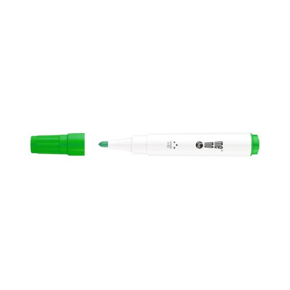 Marker do tablic suchościeralnych i flipchartów MemoBe z tuszem w kolorze zielonym i okrągłą końcówką w rozmiarze 1-3 mm. Przeznaczony do pisania i rysowania po powierzchni tablicy suchościeralnej i po blokach do flipchartów. Może być pozostawiony bez skuwki do 3 dni (ISO 554). Łatwościeralny z tablic tusz nie przebija na drugą stronę bloków do flipchartów. Obudowa markera wykonana w 30% z tworzyw z recyklingu. Wyposażony w wentylowaną skuwką zgodną z normą ISO 11540:1993. Dostępny w 4 kolorach: czarnym, zielonym, czerwonym i niebieskim. Wyprodukowany w Europie. Dostarczany w opakowaniu 10 szt.