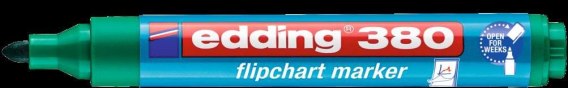 Marker do flipchartów, wyposażony w tusz na bazie wody o neutralnym zapachu, który zapobiega przebijaniu tuszu na drugą stronę. Do ponownego napełniania. Wyposażony w specjalny system cap-off, który umożliwia pozostawienie markera bez zatyczki nawet do 6 tygodni bez ryzyka wyschnięcia. Okrągła końcówka o grubości linii pisania 1,5 - 3 mm (380) lub ścięta o grubości linii pisania 1 - 5 mm (383).