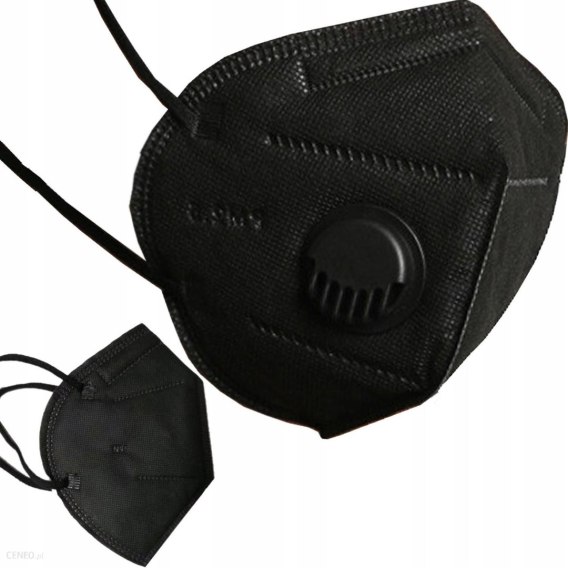 • Maseczka ochronna KN95 FFP2 z zaworkiem 20szt czarna filtracja >95% CE