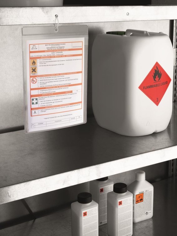 Obwoluta na dokumenty A4 z klapką ochronną, z otworem do zawieszenia, pionowa Otwierana od góry. Z bardzo wytrzymałej folii.