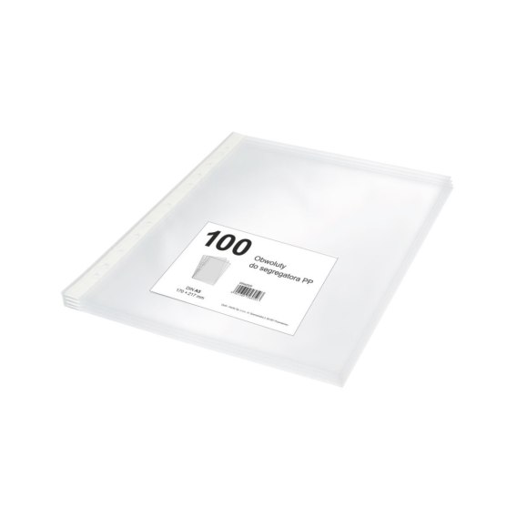 Obwoluta A5, 100 sztuk__ Obwoluty ochronne do segregatora_ na dokumenty, wykonane z folii PP, przezroczyste, dziurkowanie europejskie.A5, 100 szt. w folii, groszkowa