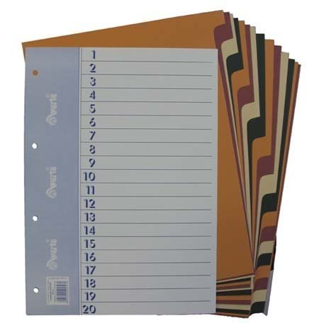 Przekładka wykonana z kartonu barwionego, na grzbiecie wycięte otwory umożliwiające wpinanie do każdego rodzaju segregatora. W komplecie strona tytułowa na opisy oraz 20 kart. Rozmiar 226x297mm