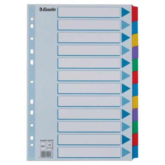 | Nazwa B2B | Przekładki, kolorowy karton, karta opisowa Mylar A4, ESSELTE, 12 kart |