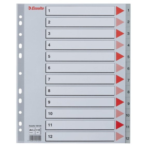 | Nazwa B2B | Przekładki plastikowe szare PP alfabetyczne A4 ESSELTE, 1-12 maxi |