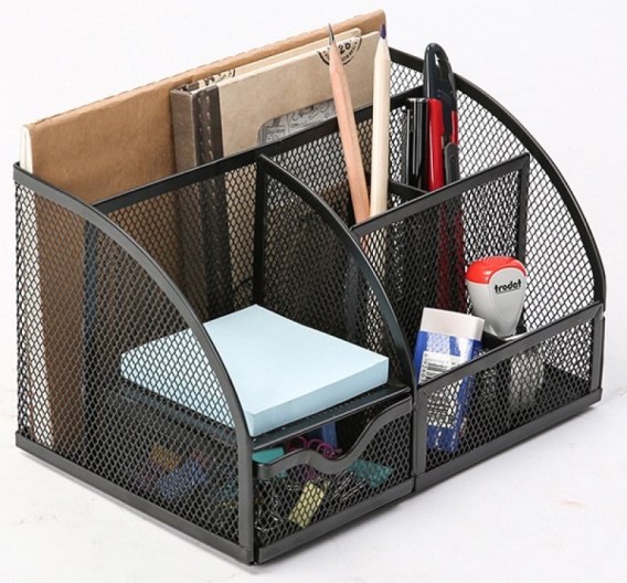 Przybornik na biurko, metal, siatka, czarny KF17295 Q_CONNET