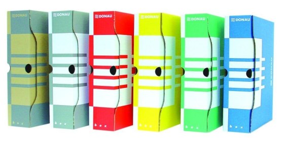 Wykonany z trójwarstwowej tektury falistej, bezkwasowej_typ fali: B_wskaźnik pH = 7,6 wg ZELLCHEMING-Merkblatt V/17/80_gramatura kartonu: ok. 440g/m__pojemność: ok. 800 kartek_mieści segregator_składany _ bardzo prosty w montażu_charakteryzuje się nowoczesnym wzornictwem_specjalny design umożliwia stawianie na krótszym lub dłuższym boku_5 ścian opisowych_posiada 4 otwory:_dwa ułatwiają wyjmowanie dociążonego pudełka z pudła zbiorczego_kolejne dwa pozwalają na wkładanie/wyjmowanie zawartości bez konieczności zdejmowania pudełka z szafy/półki