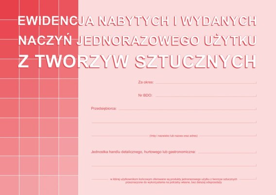 • S-210-3 Ewidencja nabytych i wydanych naczyń jednorazowego użytku z tworzyw sztucznych A5 MICHALCZYK I PROKOP
