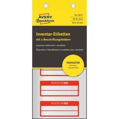 Tabliczki inwentaryzacyjne poliestrowe srebrne do opisu ręcznego, 50 szt., 50x20mm, czerwone, 2 pola na tekst, AVERY ZWECKFORM,
