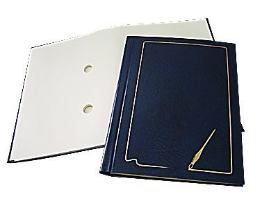 Okładka twarda, oprawiona w okleinę powleczoną PVC. Grzbiet kryty. Blok z kartonu barwionego. Zawiera 20 kart z 2 otworami.