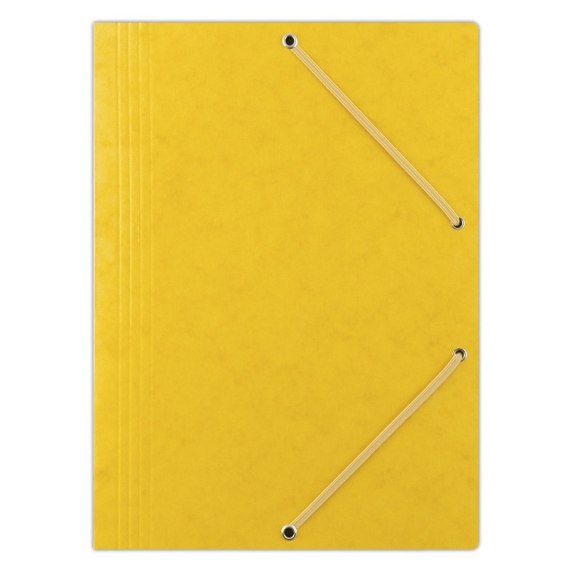 Wykonana z kartonu o gramaturze 390gsm, powlekanego woskiem_posiada Zielony Punkt (Der Gr_ne Punkt) - udział w systemie recyklingu i odzysku odpadów wynikający z przepisów prawa polskiego i UE_3-skrzydłowa_preszpanowa_zamykana za pomocą 2 płaskich, narożnych gumek w kolorze teczki_format: A4_rozmiar: 235x319mm_kolor żółty