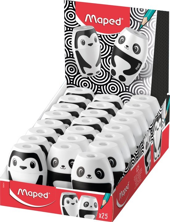 Temperówki SHAKKY - nowe oblicze plastikowej temperówki Shaker. Dwóch czarno-białych bohaterów - panda i pingwin. Obszerny pojemnik. Jeden otwór.