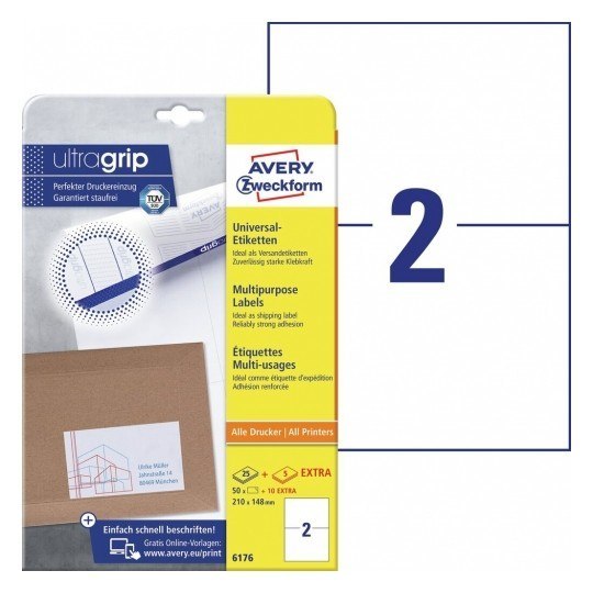 Trwałe etykiety uniwersalne 6176 210 x 148 30ark Avery Zweckform |