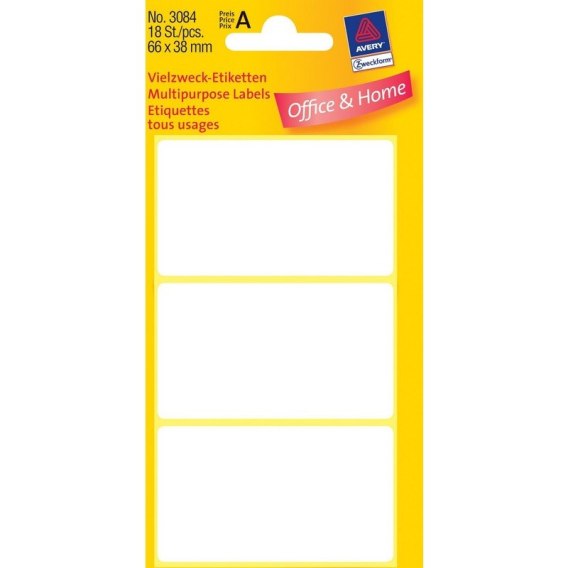 Trwałe minietykiety do opisywania ręcznego, 18 etyk./op., 76 x 39 mm, białe, AVERY ZWECKFORM, 3081