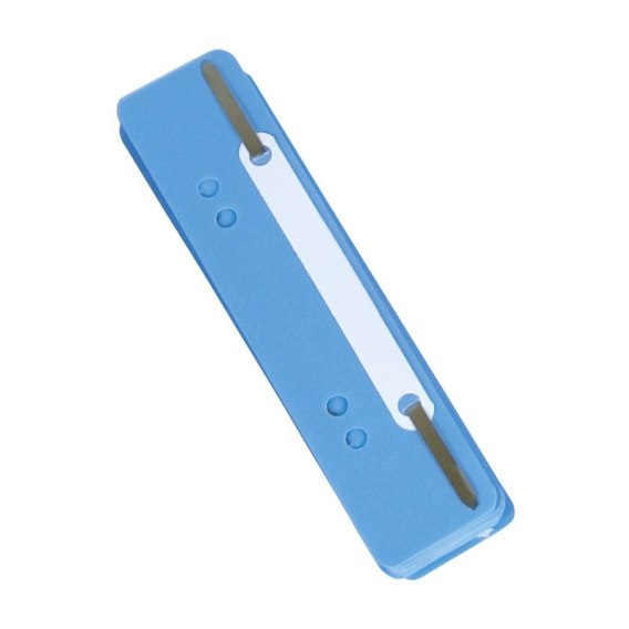 Metalowe wąsy skoroszytowe, spinające_posiada Zielony Punkt (Der Gr_ne Punkt) - udział w systemie recyklingu i odzysku odpadów wynikający z przepisów prawa polskiego i UE_podstawa wykonana z ekologicznego polipropylenu, wąsy wykonane z aluminium_4 dziurki do wpinania_rozmiar: 150x34mm_25 sztuk w j.s._kolor niebieski