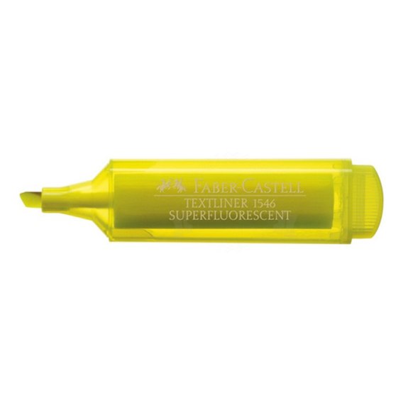 Zakreślacz 1546 Faber-Castell w kolorze żółtym. Wysokiej jakości superfluorescencyjny kolor, idealny do zaznaczania, podkreślania i wyróżniania. Odpowiedni do wszystkich rodzajów papierów. Uniwersalny tusz na bazie wody, z możliwością wielokrotnego napełniania w prosty sposób tuszem 1549. Odporny na rozmazywanie. Ze ściętą końcówką o szerokości linii pisania 1 - 5 mm. Dostępny w różnych kolorach i zestawach.