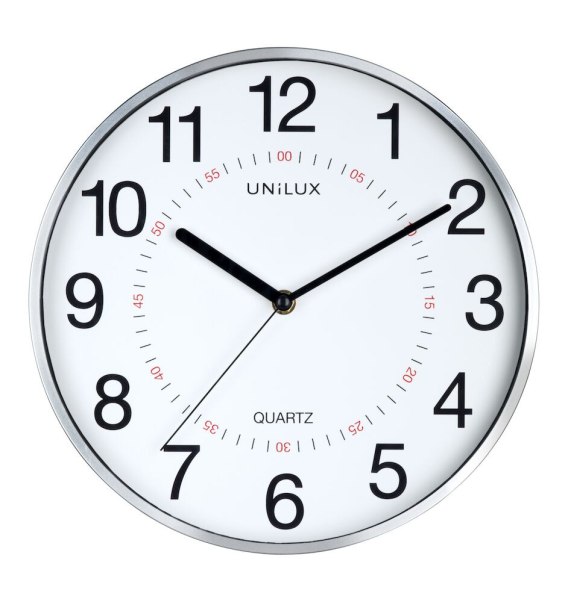Precyzja: wysokiej jakości system oscylacji oparty na kwarcu, zapewnia doskonałą niezawodność i niezrównaną precyzję; Nigdy się nie spóźni ani nie spóźni_Czytelność: ten zegar został specjalnie zaprojektowany, aby był widoczny z bliska i z daleka; Jego średnica (28,5 cm), białe tło oraz wielkość postaci pozwalają na widoczność na ponad 30 m_Materiały: Tarcza zegara jest wykonana z tworzywa sztucznego, a na przedniej tarczy znajduje się szklana tafla, która chroni wskazówki_Energia: Ten zegar ścienny zużywa bardzo mało energii (średnie zużycie: 0,07 mA); Pojedyncza bateria AA (brak w zestawie) i będzie działać przez kilka miesięcy