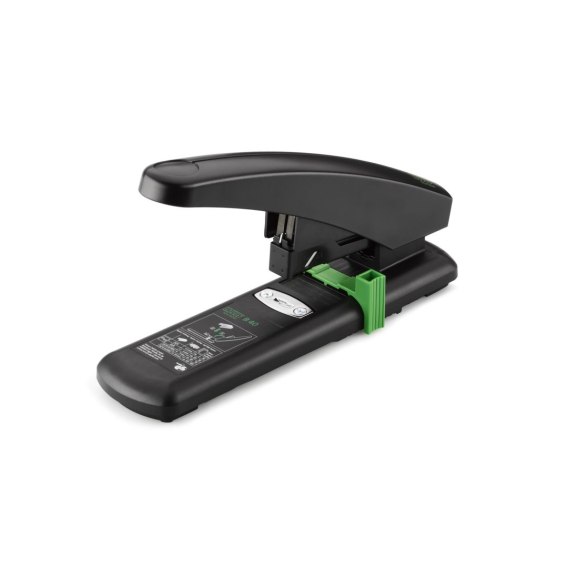 Wytrzymały zszywacz heavy-duty, idealny do wymagających prac biurowych. Bez problemu zszywa do 100 arkuszy, a system ABS zapobiega blokowaniu zszywek, zapewniając płynną pracę. Posiada regulowaną głębokość wsuwania papieru do 55 mm, podwójny system prowadzenia zszywek oraz ładowanie od góry dla wygody użytkowania. Solidna metalowa konstrukcja z plastikową podstawą gwarantuje stabilność. 10-letnia gwarancja to pewność długiej i niezawodnej pracy.